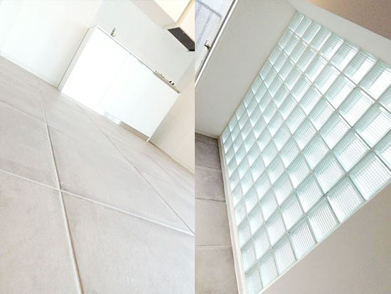ガラスブロックの採光や床がオシャレに仕上がってて