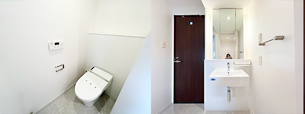 トイレは、タンクレスの温水洗浄便座付き!
