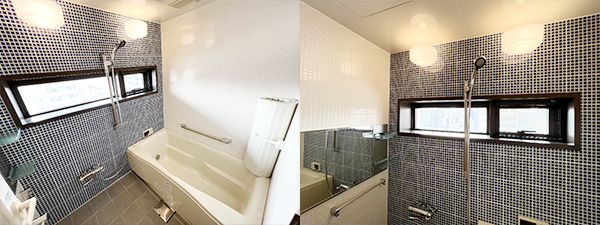 バスルームは、紺とホワイトのツートン!