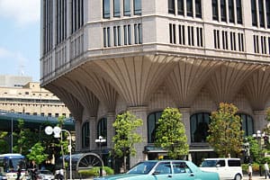 1993年9月竣工の大同生命大阪本社ビル。外観は下部が絞られたデザインになっており、斬新でありながらも、外装や内装はクラシックな細工は施されている。