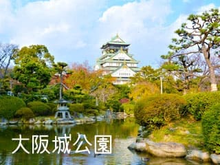 大阪の中央に位置し、大阪城天守閣をはじめとする歴史建造物を有する公園です。緑が茂る大阪城公園として整備され、春には花見で賑わう。大手門、千貫櫓、火硝蔵など13棟の重要文化財や、緑あふれる市民の森、西の丸庭園や梅林、野球場などがあり、市民の憩いの場となっています。大阪城音楽堂や大阪城ホールでは、有名アーティストによる音楽コンサートもたびたび開催されており、弓道場、修道館などスポーツ関連施設もあります。太陽の広場では、大きなイベントが行われることが多く、たくさんの人で賑わいます。