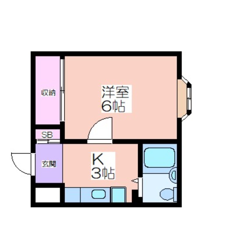 | 共益費:2,000円 | 専有面積:18㎡ 間取り詳細:洋室 6帖,K 3帖 |