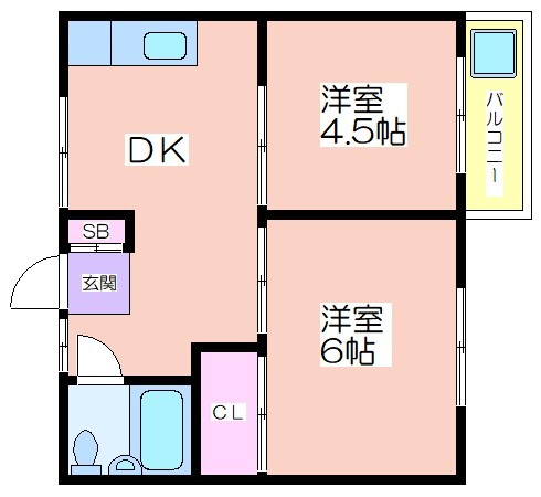 | 共益費:5,000円 | 専有面積:40㎡ 間取り詳細:洋室 4.5帖,洋室 6帖 |