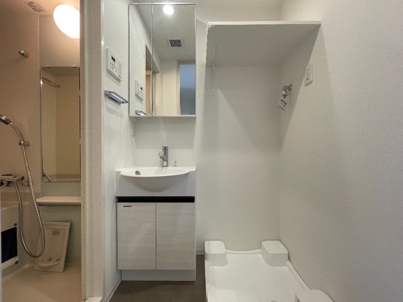 室内洗濯機置場と洗面化粧台とを備えた脱衣室もあります。