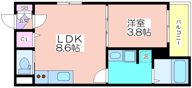 | 共益費:4,000円 | 専有面積:29.7㎡ 間取り詳細:LDK 8.6帖,洋室 3.8帖 |
