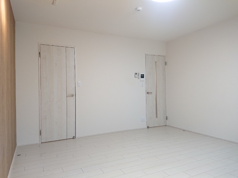 洋室は9.8帖と広々しており、白基調のお部屋にデザインクロスが良く映えるお洒落なお部屋です☆