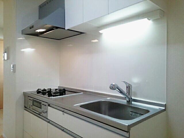 二人入居可、システムキッチン、給湯、追焚機能、シャワー付洗面化粧台、CSアンテナ、BSアンテナ、宅配ボックス、駐輪場あり、バイク置き場あり、タイル貼り、温水洗浄便座、浴室乾燥機、洗面所独立、防犯カメラ、クローゼット、シューズボックス、保証人不要、水道(公営)、ガス(都市)、排水(下水)、バス・トイレ別、シャワー、コンロ(三口)、エアコン、室内洗濯機置き場、オートロック、エレベータ有、バルコニー、フローリング、TVドアホン、最上階、敷金なし