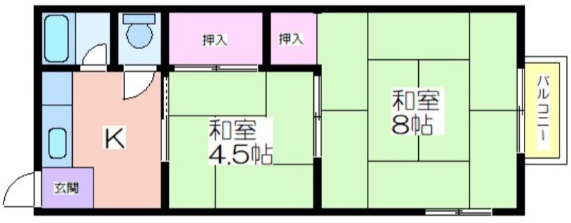 | 共益費:0円 | 専有面積:31.5㎡ 間取り詳細:和室 8畳,和室 4.5畳 |