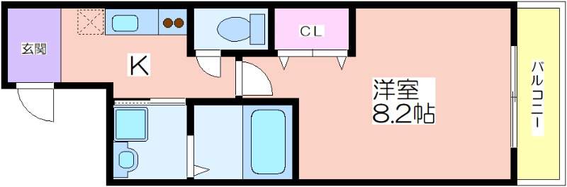 | 共益費:5,500円 | 専有面積:30.05㎡ 間取り詳細:洋室 8.2帖 |