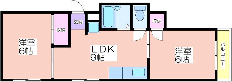 | 共益費:6,000円 | 専有面積:40.5㎡ 間取り詳細:LDK 9帖,洋室 6帖,洋室 6帖 |