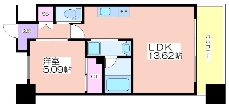 | 共益費:30,000円 | 専有面積:42.35㎡ 間取り詳細:LDK 13.6帖,洋室 5.1帖 |