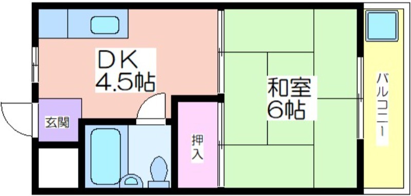 | 共益費:3,000円 | 専有面積:22.37㎡ 間取り詳細:DK 4.5帖,和室 6畳 |