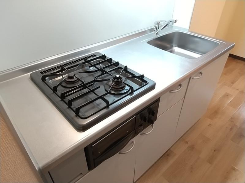 システムキッチン、給湯、シャワー付洗面化粧台、CATV、宅配ボックス、駐輪場あり、洗面所独立、防犯カメラ、クローゼット、シューズボックス、照明器具付き、保証人不要、水道(公営)、ガス(都市)、排水(下水)、バス・トイレ別、シャワー、ガスコンロ、コンロ(二口)、エアコン、室内洗濯機置き場、バルコニー、フローリング、礼金無し、敷金なし