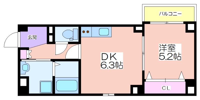 | 共益費:6,000円 | 専有面積:31.03㎡ 間取り詳細:DK 6.3帖,洋室 5.2帖 |