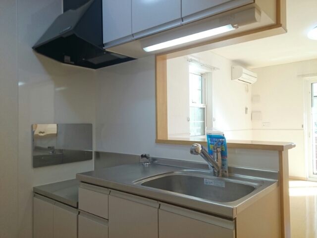 給湯、シャワー付洗面化粧台、BSアンテナ、駐輪場あり、角部屋、温水洗浄便座、カウンターキッチン、浴室乾燥機、洗面所独立、クローゼット、シューズボックス、照明器具付き、ペット相談、保証人不要、水道(公営)、ガス(都市)、排水(下水)、バス・トイレ別、シャワー、エアコン、室内洗濯機置き場、バルコニー、フローリング、TVドアホン、インターネット使用料無料、敷金なし
