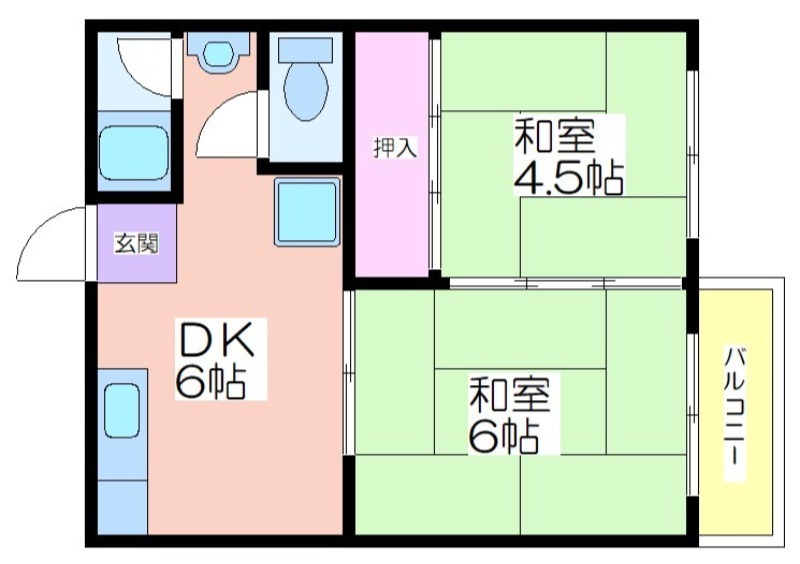 | 共益費:3,000円 | 専有面積:34㎡ 間取り詳細:DK 6帖,和室 6畳,和室 4.5畳 |