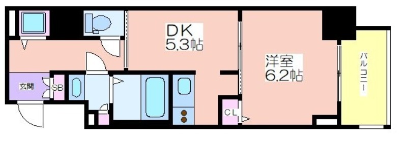 | 共益費:10,000円 | 専有面積:32.65㎡ 間取り詳細:洋室 6.2帖,DK 5.3帖 |