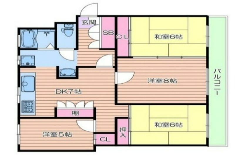| 共益費:5,000円 | 専有面積:71.87㎡ 間取り詳細:DK 7帖,洋室 8帖,洋室 5帖,和室 6畳,和室 6畳 |