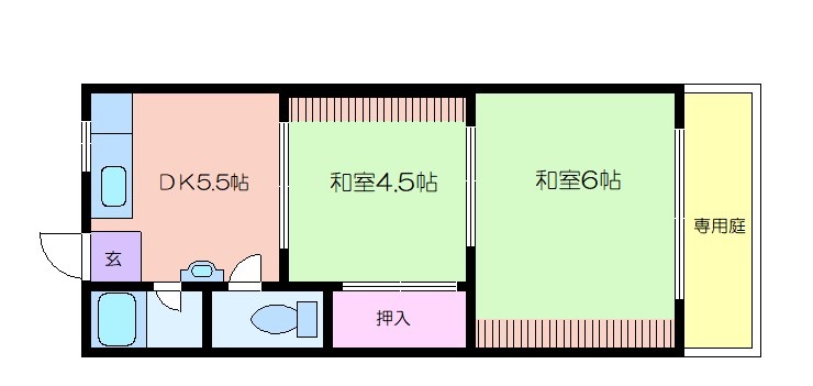 | 共益費:5,000円 | 専有面積:32.24㎡ 間取り詳細:和室 6畳,和室 4.5畳,DK 5.5帖 |