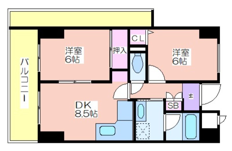 | 共益費:10,000円 | 専有面積:49.5㎡ 間取り詳細:洋室 6帖,和室 6畳,DK 8.5帖 |