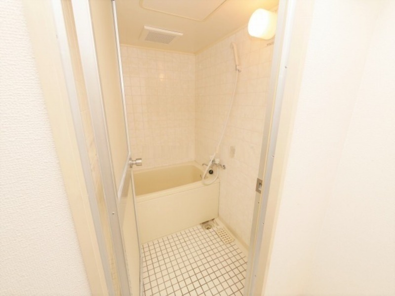 タイル張りで白色の浴室になっているので、明るい印象の浴室になっています。