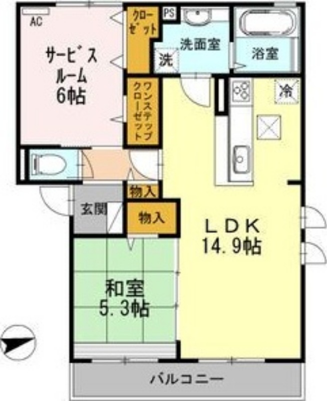 | 共益費:7,000円 | 専有面積:60.85㎡ 間取り詳細:LDK 14.9帖,和室 5.3畳,S 6帖 |