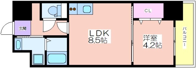 | 共益費:7,000円 | 専有面積:32.91㎡ 間取り詳細:LDK 8.5帖,洋室 4.2帖 |