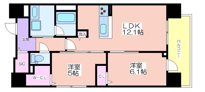 間取り詳細:LDK 12.1帖,洋室 5帖,洋室 6.1帖