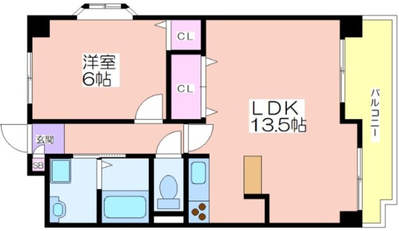 | 共益費:7,000円 | 専有面積:46.87㎡ 間取り詳細:LDK 13.5帖,洋室 6帖 |