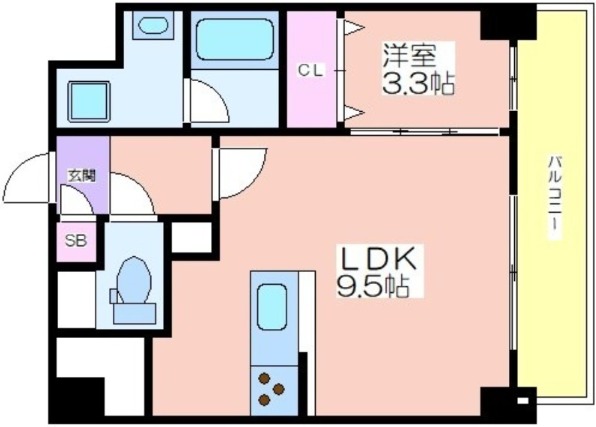 | 共益費:11,000円 | 専有面積:32.52㎡ 間取り詳細:LDK 9.5帖,洋室 3.3帖 |