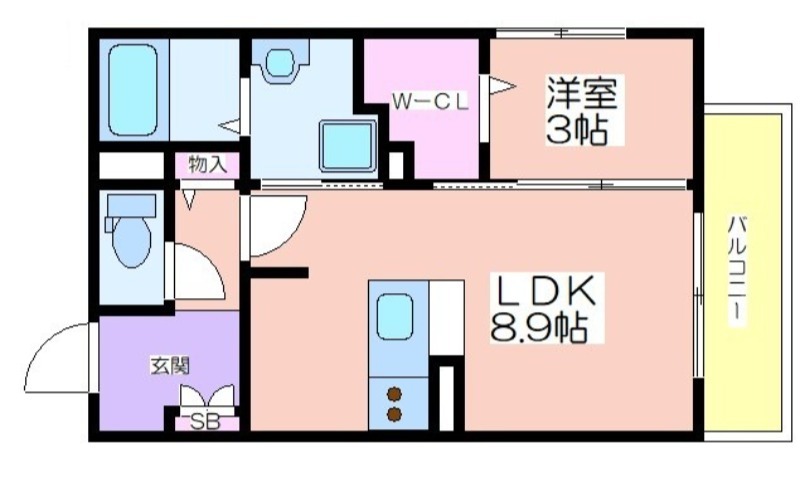 | 共益費:6,000円 | 専有面積:33.61㎡ 間取り詳細:洋室 3帖,LDK 8.9帖 |