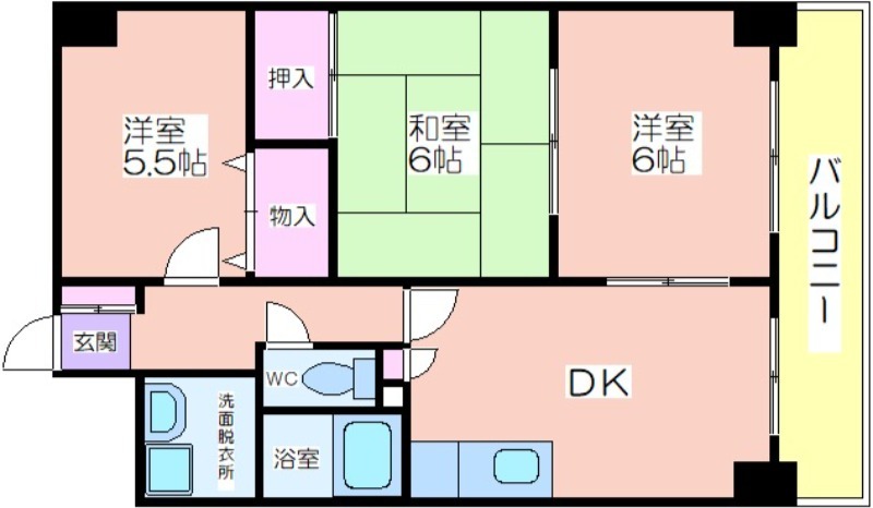 | 共益費:10,000円 | 専有面積:59.16㎡ 間取り詳細:洋室 6帖,和室 6畳,洋室 5.5帖 |