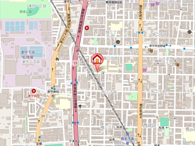 | 交通 | 南海汐見橋線「西天下茶屋駅」徒歩7分 南海汐見橋線「津守駅」徒歩11分 Osaka Metro四つ橋線「花園町駅」徒歩14分 |