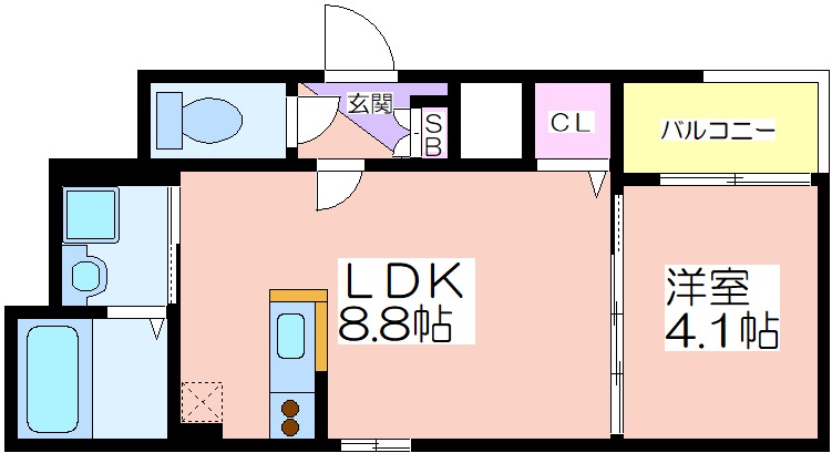 | 共益費:4,000円 | 専有面積:29.86㎡ 間取り詳細:LDK 8.9帖,洋室 4.1帖 |
