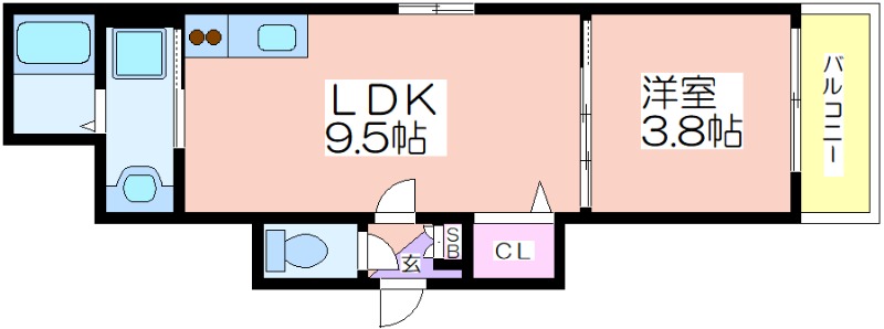 | 共益費:4,000円 | 専有面積:29.2㎡ 間取り詳細:LDK 9.5帖,洋室 3.8帖 |