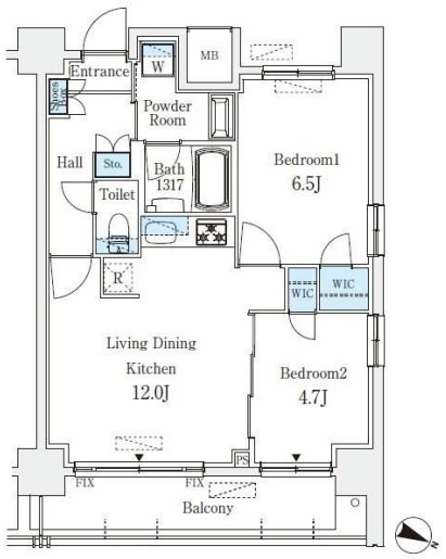 | 共益費:15,000円 | 専有面積:52.76㎡ 間取り詳細:LDK 12帖,洋室 6.5帖,洋室 4.7帖 |
