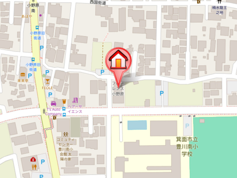 | 近隣情報 | 小学校:箕面市立豊川南小学校84m コンビニ:ローソン箕面小野原東三丁目店291m スーパー:関西スーパー小野原店377m ドラッグストア:ココカラファイン小野原店402m |