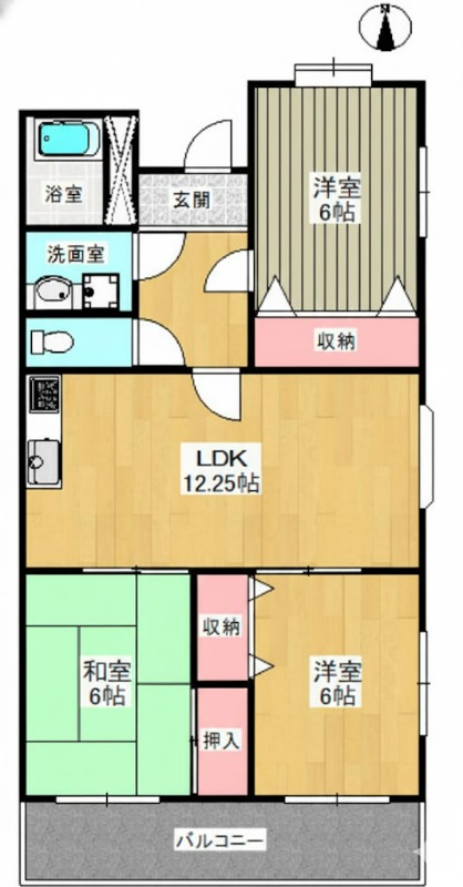 | 共益費:5,000円 | 専有面積:70.05㎡ 間取り詳細:和室 6畳,洋室 6帖,洋室 6帖,LDK 12.2帖 |
