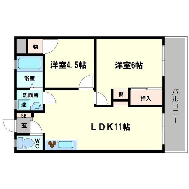 | 共益費:3,000円 | 専有面積:51㎡ 間取り詳細:洋室 6帖,洋室 4.5帖,LDK 11帖 |