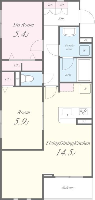 | 共益費:6,000円 | 専有面積:59.73㎡ 間取り詳細:LDK 14.5帖,洋室 5.9帖,S 5.4帖 |