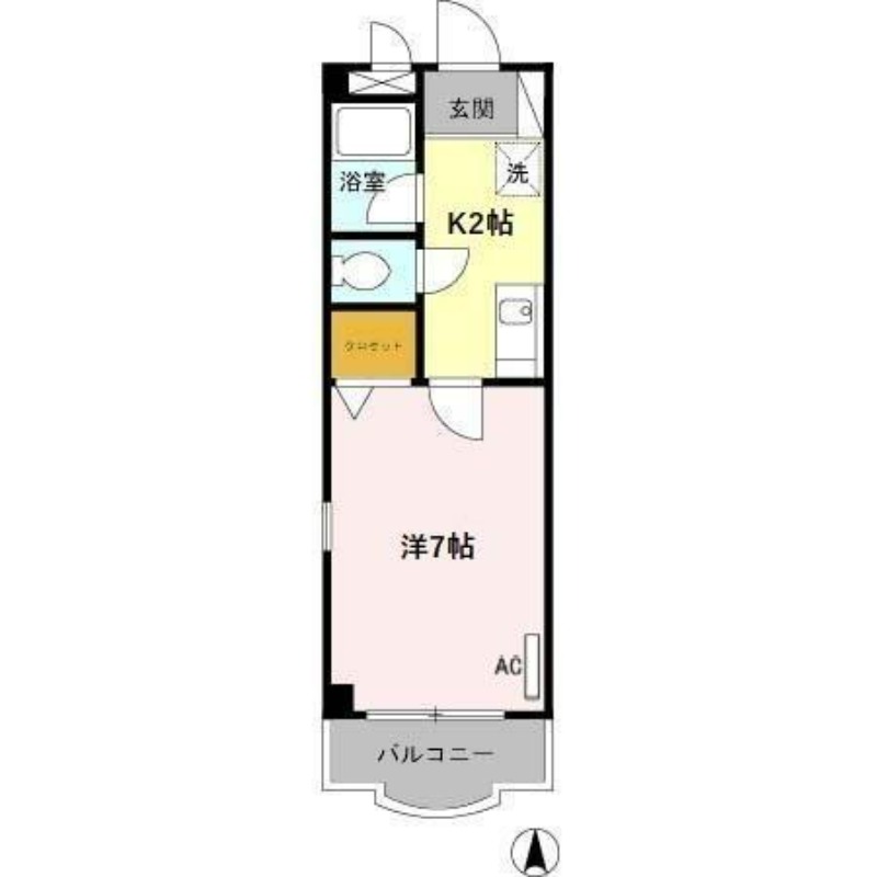 | 共益費:5,000円 | 専有面積:24㎡ 間取り詳細:洋室 7帖,K 2帖 |