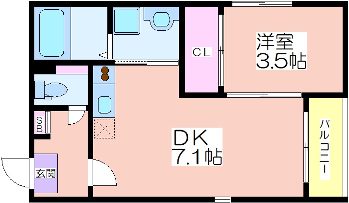 | 共益費:4,000円 | 専有面積:27.53㎡ 間取り詳細:DK 7.1帖,洋室 3.5帖 |