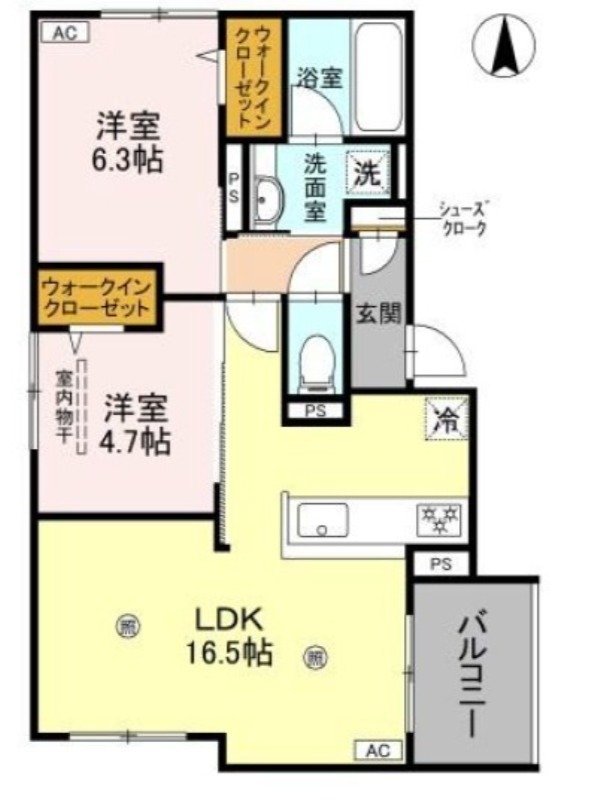 | 共益費:8,000円 | 専有面積:61.82㎡ 間取り詳細:LDK 16.5帖,洋室 6.3帖,洋室 4.7帖 |