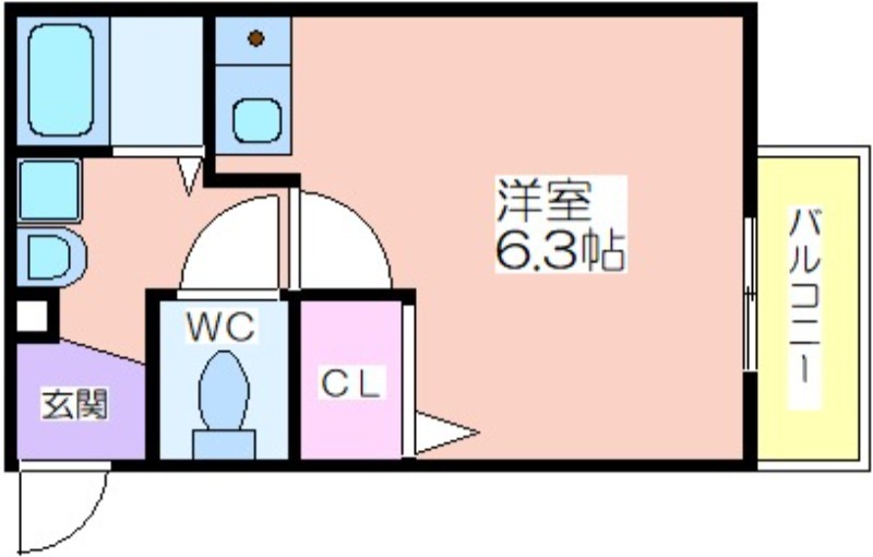 | 共益費:5,000円 | 専有面積:20.47㎡ 間取り詳細:洋室 6.3帖 |