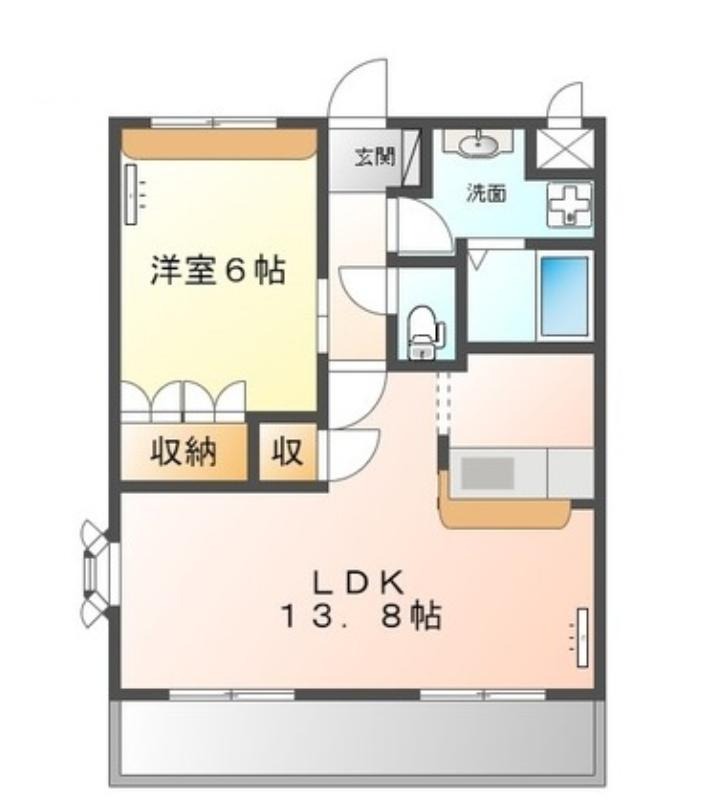 | 共益費:3,000円 | 専有面積:45.36㎡ 間取り詳細:洋室 6帖,LDK 13.8帖 |