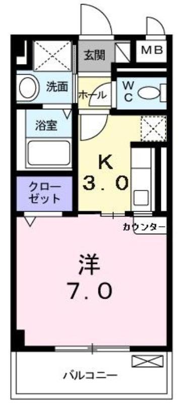 | 共益費:3,500円 | 専有面積:26.12㎡ 間取り詳細:洋室 7帖,K 3帖 |