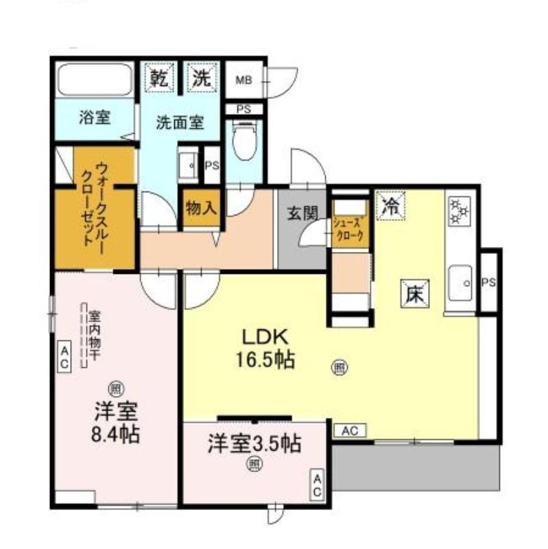 | 共益費:9,000円 | 専有面積:71.34㎡ 間取り詳細:LDK 16.5帖,洋室 8.4帖,洋室 3.5帖 |