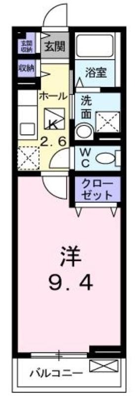| 共益費:2,300円 | 専有面積:30.43㎡ 間取り詳細:K 2.6帖,洋室 9.4帖 |