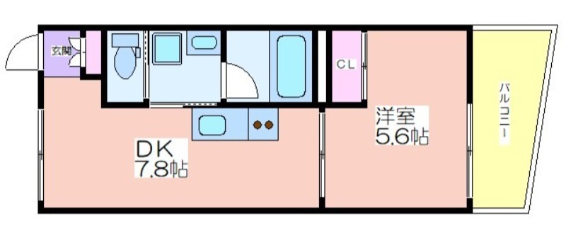 | 共益費:4,000円 | 専有面積:30.78㎡ 間取り詳細:洋室 5.6帖,DK 7.8帖 |