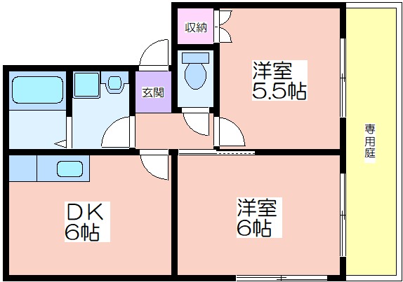 | 共益費:3,000円 | 専有面積:36㎡ 間取り詳細:DK 6帖,洋室 6帖,洋室 5.5帖 |